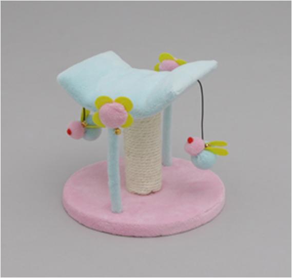鈴つきのおもちゃが4つ、中央には爪とぎ、上は登れるようになっており、コンパクトながら機能満載のつくりです。重さは約1.1kgで、見た目よりしっかりしています。