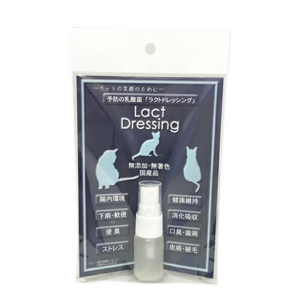 乳酸菌が沢山入っており、腸内環境を整え、うんちの臭いも軽減させてくれます。普段あげているフードに2.3プッシュして与えます。便が少しやわいなという時こそラクトドレッシングの出番。与えた次の日には良いうんちが出ると思いますよ。