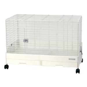 ケージにはストッパー付きのキャスターもついており、固定・移動も自在に対応可能です。また、尿飛び防止の衝立も高めに設置されていますので、おしっこを飛ばしやすいウサギさんにも対応しやすい作りになっています。