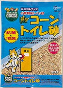 マルカン コーントイレ砂は固まることはありませんが、ほこりがでにくく、吸水性にすぐれています。抗菌、消臭作用もあります。天然素材のとうもろこしでできているので、ハムスターが誤って食べてしまっても安心です。また、とうもろこしなので燃えるゴミとして捨てることができます。